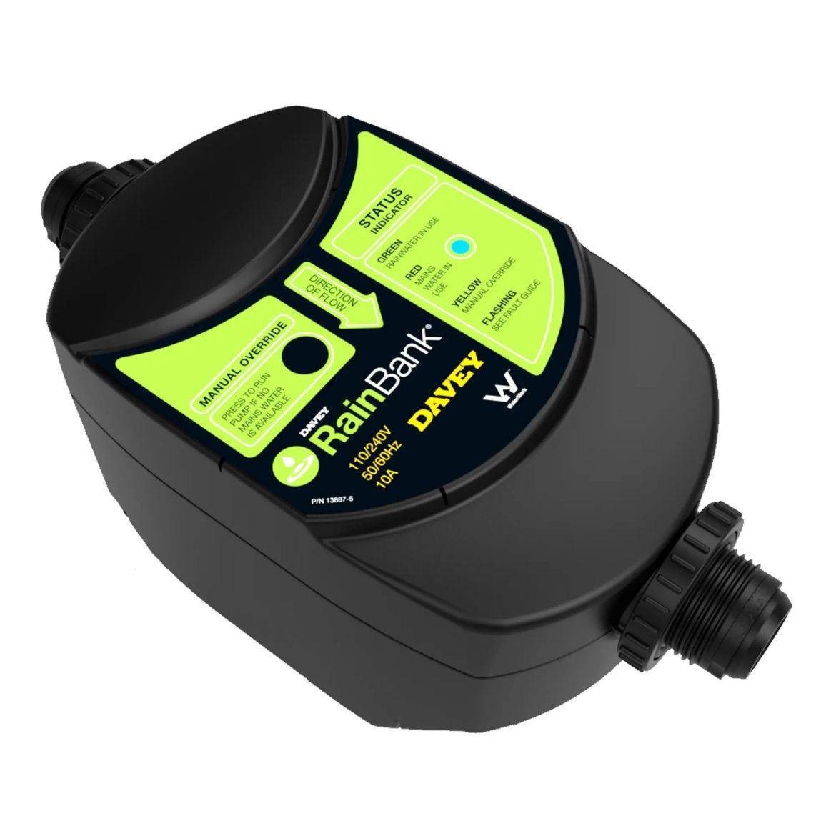 RainBank is an automatic controller for rainwater harvesting, supplying water for toilet and laundry applications, and can save up to 40% of a household's mains water use, helping to conserve water. A RainBank system automatically selects the water source, with rainwater given priority over the mains supply. Mains water is supplied when the tank is empty or in the event of a power outage.